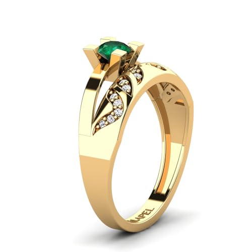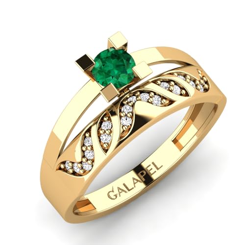 Home Jewelry Rings 0.42 Ct Natural Emerald Round Solitaire Dual Stone Ring, Sterling Silver with Gold Finish
