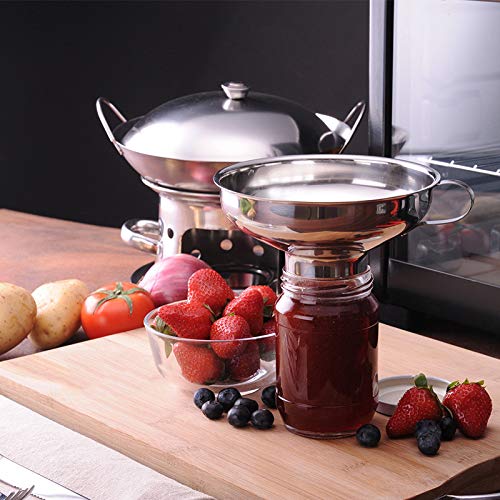 Description: Features: — High Quality Material– Kitchen Helper– Practical Tool Item Type: Funnel Applicable: Kitchen Color: Silver Size: Caliber: About 14. 9cm, Height: 6cm, Neck Diameter: About 5. 5cm