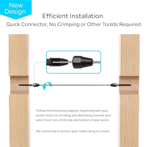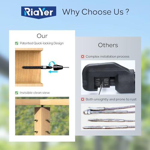 Advanced Self-locking Technology: The RiaYer Black Cable Railing Kit employs revolutionary self-locking technology for a fast and secure cable attachment; allows for the cable to be firmly installed by hand tightening only; suitable for 1/8″ wire rope for cable railing system, stairs railing, angle railing, deck railing, and balcony fence indoors and outdoors.