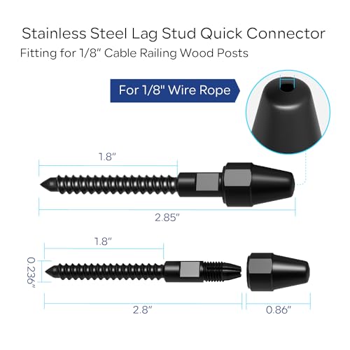 10 Pairs Black Cable Railing Kit Tensioner QuickLock, Right&Left Handed Thread Swage Lag Screws for Wood Post of 1/8″ T316 Steel Cable Railing Hardware, Tool-Free Installation,HF015BL