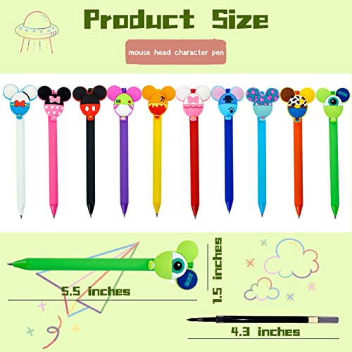 10pcs Mouse Head Character Ears Pens Set, Retr ctable Ballpoint Pen, Multi Color Jumbo Autograph Princess Pencil Signature Office Desk Stationary Accessories, Gift for Teacher Student