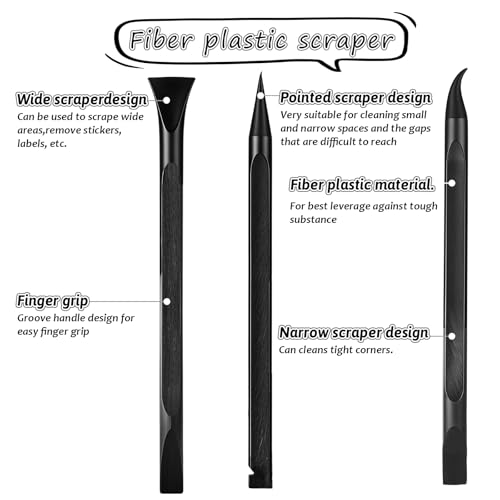 【Cleaning Tool Set】This label remover tool set includes 3 different shapes – wide scraper head, narrow scraper head, and pointed scraper head, 3 pieces of each shape. The caulk scraper is good for a variety of applications, and you can also share these handy tools with family and friends to ensure that everyone has the right tool to get the job done.