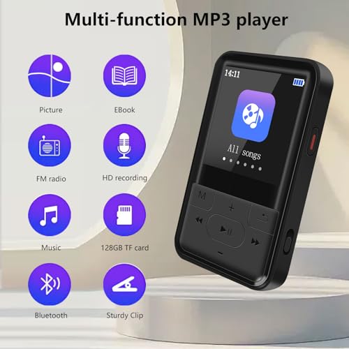 【Built-in 8GB and 128GB TF card】Our MP3 player offers ample storage space, store thousands of your favorite songs with ease and enjoy endless hours of music without the need for an internet connection. MP3 player with built-in HiFi sound HD speakers for music playback without headphones.