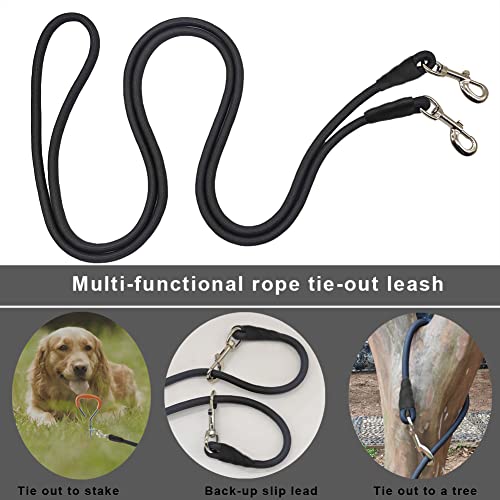 SEPXUFORE 15 FT Strong Nylon Tie Out Rope Dog Leash + 18 Inch Short Dog Leash + Traffic Pet Lead