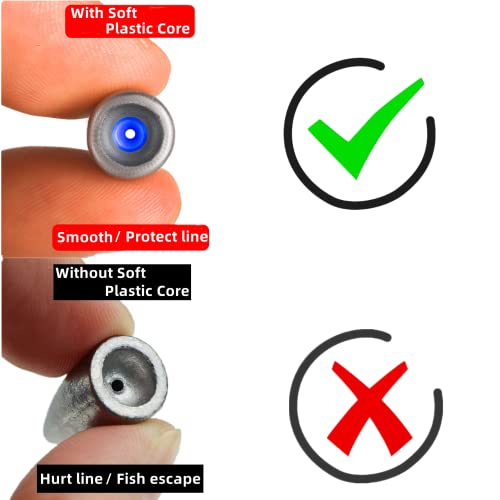 Worm Fishing Sinker has smooth surface ,inner with soft plastic core,it could protect your fishing line,make sure not cutting it or twist it.