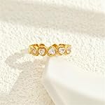 18K Gold Plated Rings for Wedding – Non-Tarnish Adjustable 304 Stainless Steel with Heart Zirconia Stackable Ring- Elegant & Durable Gift for Women Finger Rings
