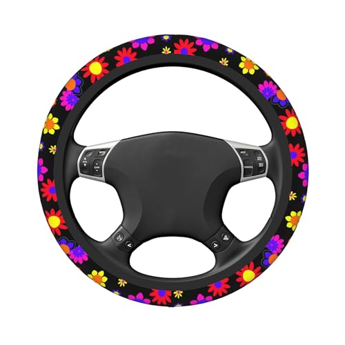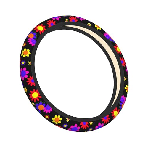 1970s Hippie Flowers Power Colorful Flower Power Steering Wheel Cover Universal 15 Inch Non-Slip Car Wheel Wrap Elastic Stretch Wheel Protector for Auto Van Truck SUV