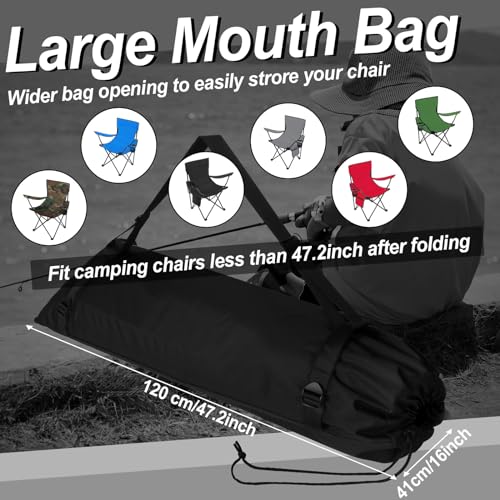 Easily Accommodates Standard Size: measuring at 120 cm x 41cm/ 47.2 x 16 inches, the camp chair bag is designed to fit almost all standard size camping chairs; With our large capacity bag, users can effortlessly store their chairs around during their trips; Enjoy convenience without compromising on storage capacity or discomfort during handling