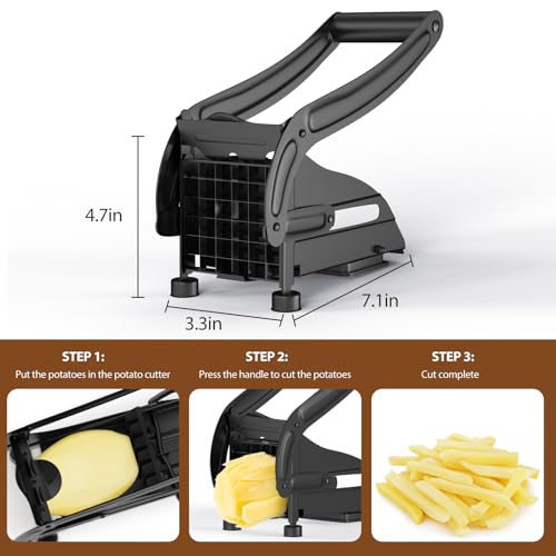 2024 Upgrade French Fry Cutter, Stainless Steel Potato Cutter With 2 Blades, Potato Slicer for French Fries, Fry Cutter Smooth Cut Potatoes Carrots Onions (Black)