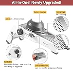 No Replacement Parts Required:The mandolin comes with a knob for adjusting thickness and julienne sizes, along with removable double-side blades, giving users more slicing options. Easy to use with no need to change attachments, just adjust the knob