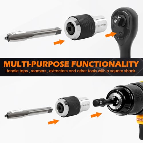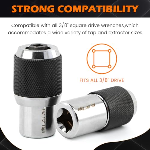 【WIDE USE】This opens up a whole new way of thread chasing, tapping, and even extracting. Battery and air-powered tools, universal joints, extensions, regular ratchets, Both professional and DIY enthusiasts can trust the quality and performance of this product.