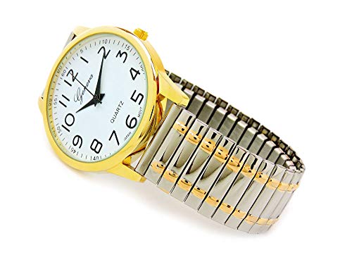 Stretch Band Watch – the perfect blend of elegance and functionality! This stunning timepiece features a captivating blend of gold and silver tones, creating a sleek two-tone design that is sure to turn heads.