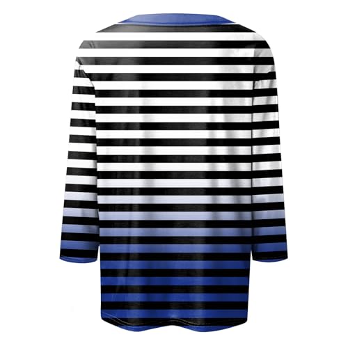 3/4 Length Sleeve Womens Tops Plus Size,Basic Elbow Sleeve Workout Top Striped Shirt Crew Neck 3 Quarter Sleeve Tees