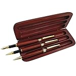 Home Pen & Pencil Sets 3 Pcs Wooden Pens Set with Gift Case/Best Writing Fountain Fancy Ballpoint Pen and Luxury Gel Pen with Ink Refills, Promotional Business Designer Pens