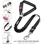 - Robust Construction – Durable rip-stop nylon, a powerful elastic bungee cord, and a 360¡ã rotating clasp.Our dog seat belt harness for cars is crafted from high-density nylon fabric, ensuring sturdiness and durability.Our dog car leash enables providing you the driving experience you and your pup deserve – a dog car harness that you can rely on.