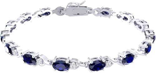 Charming_Creation 7 Inches Oval Cut Blue Shappire & Diamond Tennis Bracelet 14K White Gold Plated For Women's Gift Her $229.99
