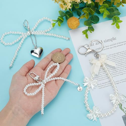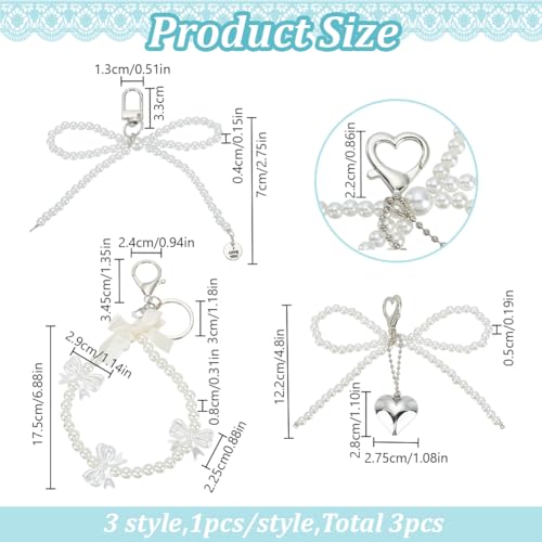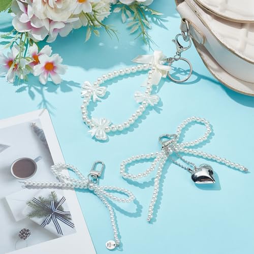 3Pcs Pearl Bow Keychains Cute Key Chain Wristlet Bracelet Keychain Aesthetic Keychain Charms Keychain Accessories for Women Purse Backpack Car Key Bag Charm