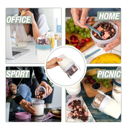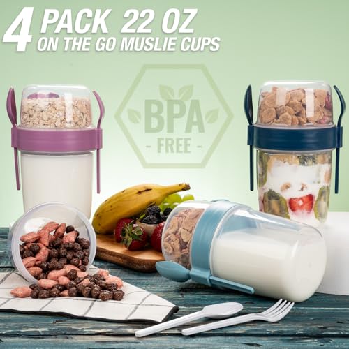 4 Pack On The Go 22 oz Breakfast Cups with Lids and Spoon, Reusable Cereal Yogurt Cup with Topping Plastic Overnight Oats Container for Granola Oatmeal (22 oz – 4 Pack)