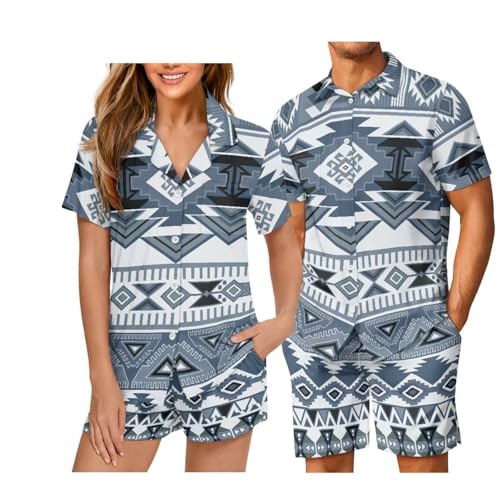 Aztec Couple Short Sleeve Shorts Pajama Set 3D Print Native American Patterns Button Down Casual Wear with Pockets $32.99