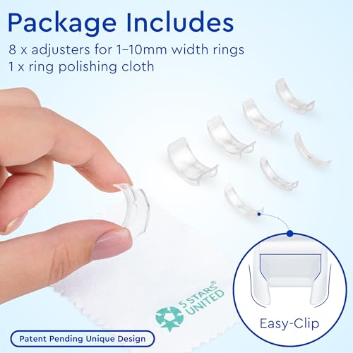 5 STARS UNITED Ring Sizers for Loose Rings – 8 Easy-Clip Ring Size Adjusters for 1-10 mm Band Widths – Ring Guards for Women and Men