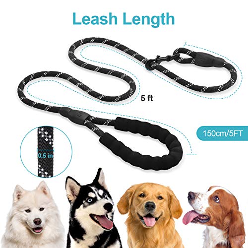 5ft 1/2in Heavy Duty Black Dog Leash for Large Dogs & Medium Size Dogs – Highly Reflective Heavy Duty Dog Rope Leash with Soft Padded Anti-Slip Handle- for 18-120 lbs Dogs