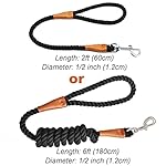 Home Pet Supplies Leashes 6 FT Rope Dog Leash, Soft Strong Braided Black Dog Leash with Leather Tailor Connection Pet Leash for Small Medium Large Dogs
