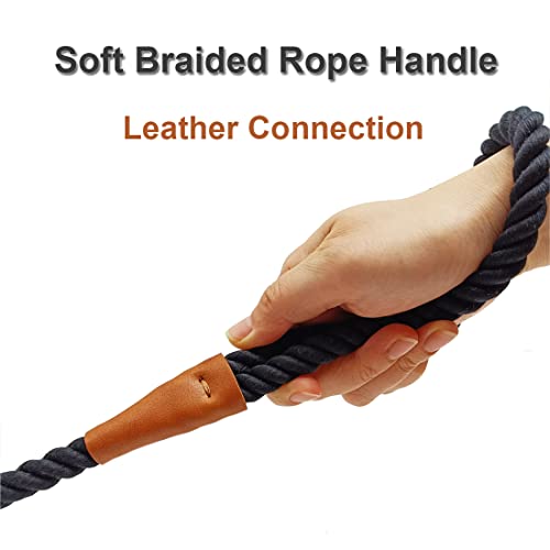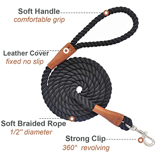 6 FT Rope Dog Leash, Soft Strong Braided Black Dog Leash with Leather Tailor Connection Pet Leash for Small Medium Large Dogs