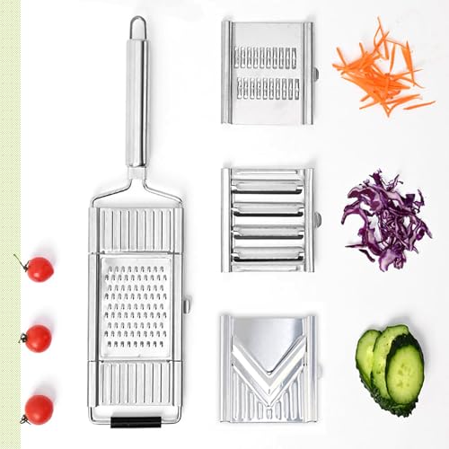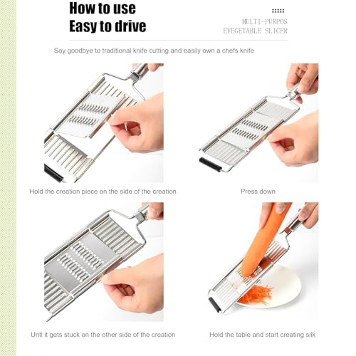 Multi-purpose Vegetable Slicer Cuts Set: Multi purpose vegetable slicer can be used for slicing, grating and shredding; Great for chopping vegetables and fruits, making salads, making wavy chips for kids and more