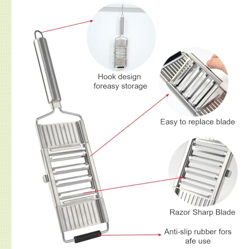 Quality Multipurpose Vegetable Slicer: Grater is made of food-grade stainless steel, safe for direct contact with food, providing a long life in your kitchen without having to worry about chopping affecting the taste of food or fruit