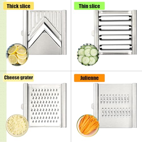 Multi Purpose Vegetable Slicer: This set included : 1 multipurpose vegetable slicer, 5 interchangeable blades perfect for slicing and grating of vegetables, fruits, cheese, and more rom thin slices to julienne strips, Landepend multi purpose vegetable slicer chopper offers a range of cutting options to suit your culinary needs.