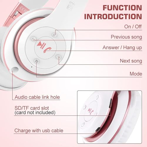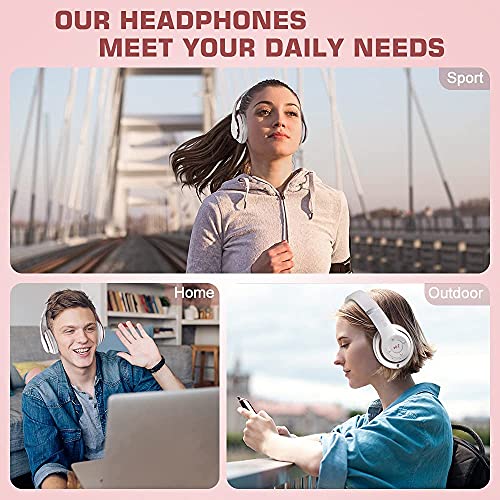 6S Wireless Bluetooth Headphones Over Ear, Hi-Fi Stereo Foldable Wireless Stereo Headsets Earbuds with Built-in Mic, Volume Control, FM for Phone/PC (White & Rose Gold)