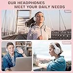 [ADJUSTABLE AND PORTABLE DESIGN] Adjustable headband are ergonomic design and ultra-soft ear cups, Bluetooth headphones provide a comfortable around-ear fit. Foldable design makes it easy for you to take the headphones whenever they go. Perfect for on-line courses, classes, movies, etc