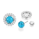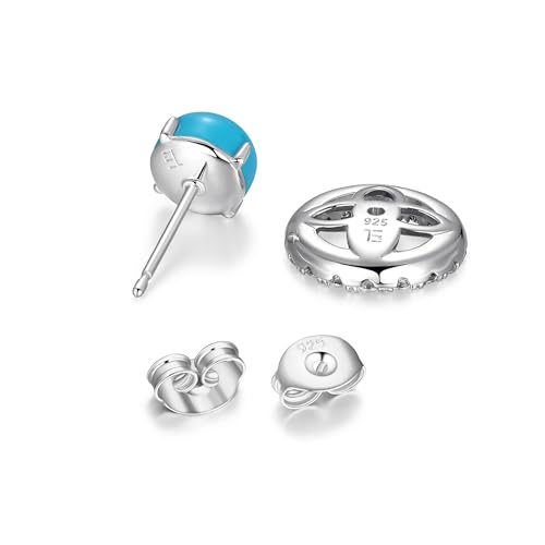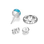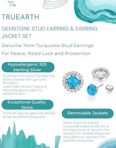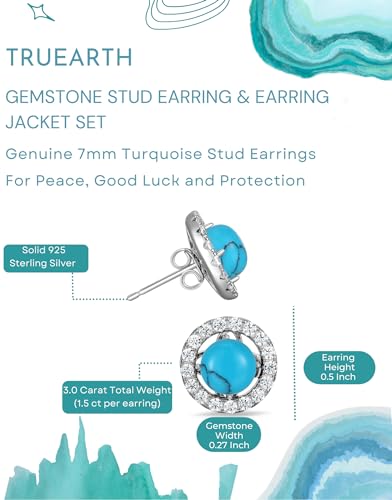TRUEARTH 3.0 – 4.0 Ct (7mm) Genuien Gemstone Stud Earrings and Earring Jacket Set, 925 Sterling Silver Turquoise, Rose Quartz or Green Jade Earrings with D Color VVS Clarity Cubic Zirconia, Good Fortune Protection Healing Earrings for Women Men