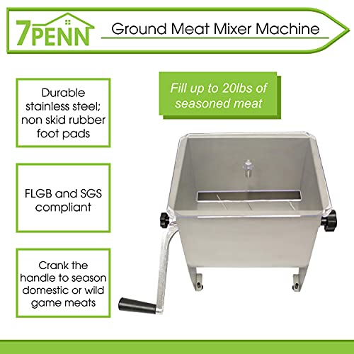 7Penn Manual Meat Mixer – 20 lb Sausage Mixer Machine Meat Processing Equipment, Ground Beef Hand Mixer with Lid