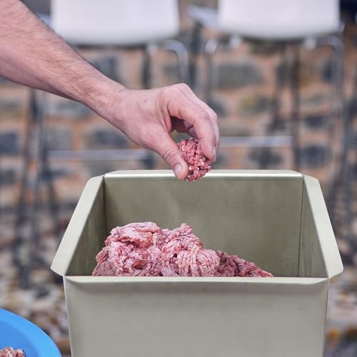 [Customize Your Blend]: Mix batches of 10 to 20 pounds (4.5 to 9.1kg) of meat with your favorite seasonings and cures in the ground meat mixer hand tool; 8 by 1-inch (20.3 by 2.5 cm) spice slot on plastic lid allows you to add premixed seasoning blends safely