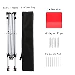 Product 2: takes only a minute to set up. Folding steel frame with no loose parts. No tools required. Setup and breakdown is quick and easy with the push button toggle Leg adjustments and the oversize easy grab pull Pins at the top corners. With a carrying bag