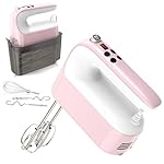 9-Speed Digital Hand Mixer Electric, 400W DC Motor, Hand Mixer electric Handheld with Snap-On Storage Case, Touch Button, Turbo Boost, 5x Stainless Steel Accessories (Pink)