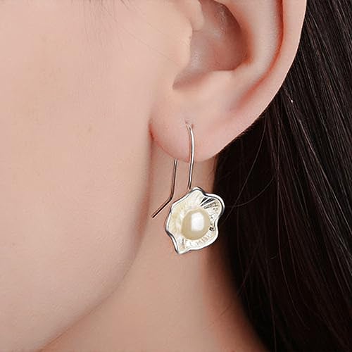 925 Sterling Silver Plumeria Flower Drop Dangle Hook Earrings with Pearl, Free Hypoallergenic, Plumeria Flower Stud Earrings for Women Crystal Flower Stud Earrings