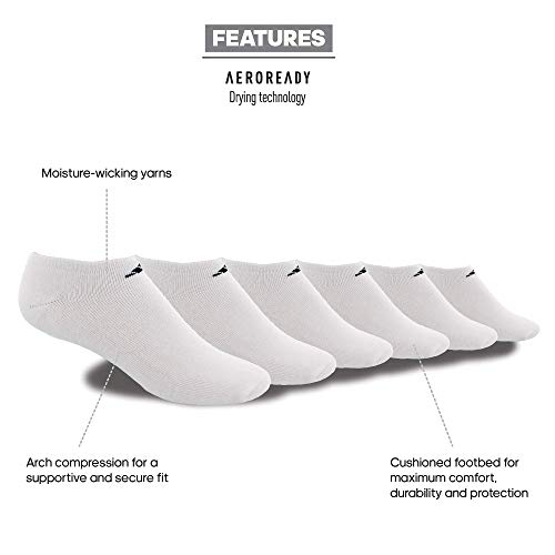 adidas mens Athletic Cushioned No Show Socks With Arch Compression for a Secure Fit (6-pair)