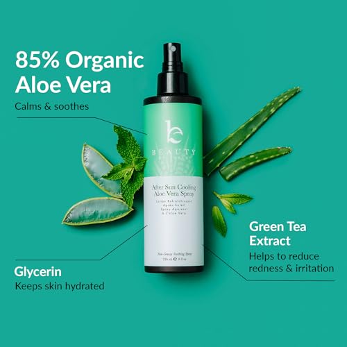 After Sun Cooling Aloe Vera Spray – USA Made With Organic Aloe Vera, Fast Absorbing After Sun Care for Sunburn Relief, Skin Cooling After Sun Spray, Sunburn Treatment Spray Lotion for Body