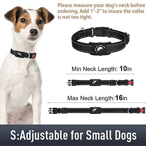 Airtag Dog Collar for Small Dogs, Reflective Dog Collars with AirTag Holder, Soft Padded & Safety Locking Buckle, Nylon Pet Collar Adjustable for All Breeds, Black