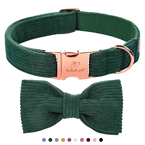 Green Dog Collars for Medium Dog,Cute Corduroy Dog Collar with Bow Tie Safety Metal Buckle Adjustable Puppy Collars for Small Medium Large Boy&Girl Dogs,M-Neck 13.5"-22" $15.99