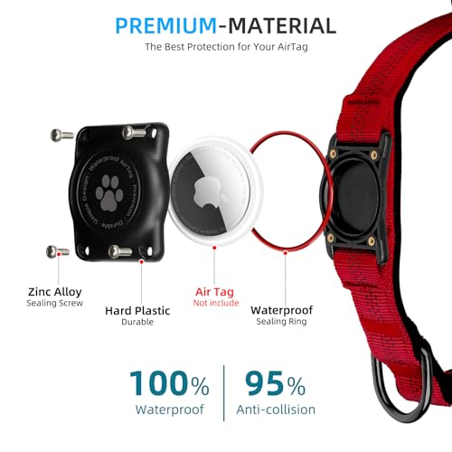 AirTag Dog Collar, IP68 Waterproof Air Tag Dog Collar Holder, Reflective, Ultra-Durable, Comfortable Padded, Heavy Duty Dog Collars for Small Medium Large Dogs (L (14.8″-20.3″), Red)
