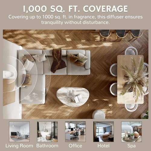 Wide Coverage: Spread your favorite scents over a large area, up to 1000 sq.ft., perfect for places like your living room, bathroom, office, hotel, or spa.