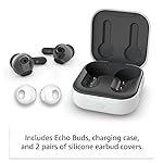 Hear your world — Echo Buds are a semi-in-ear design that help reduce outside noise and keep you connected to your surroundings while listening to music or taking calls. Light weight and sweat resistant, they ship with pre-installed silicone earbuds covers to optimize your fit.