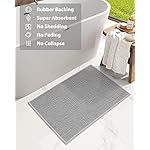 • ANTI-SLIP & IMPERMEABLE: Heavy-duty textured rubber backing make sure the bathroom floor mat stays in place even on the wet bathroom floor. Waterproof backing prevents water from penetrating the bath mat and wetting the floor. Moreover, rubber backing is more durable and won’t be smelly after long-term use.