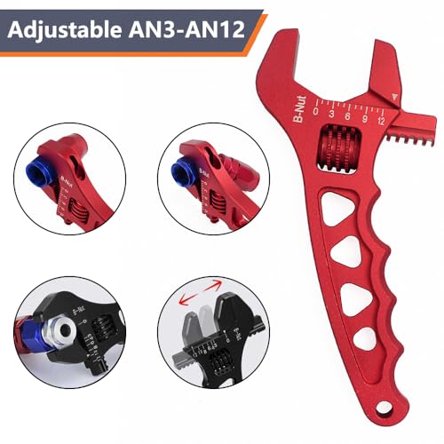AN Hose Fitting Adjustable Wrench 3AN-12AN Lightweight Aluminum(Red)