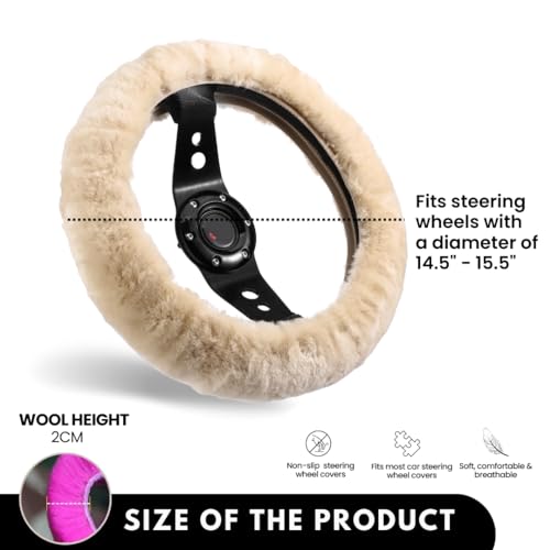 Premium Material; Andalus furry steering wheel covers are made from 100% Authentic Australian sheepskin Wool for plush comfort and sweat absorption