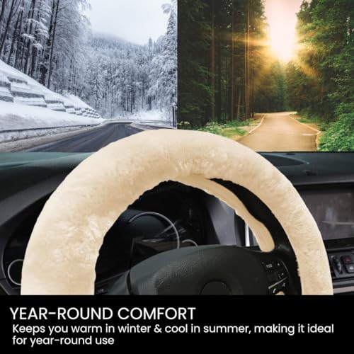 Andalus Brands Australian Sheepskin Steering Wheel Cover, Anti-Slip Universal 15 Inch Fuzzy Steering Wheel Cover Offers a Plush Velvet-Like Touch, Eco-Friendly Fluffy Steering Wheel Cover (Pearl)