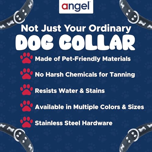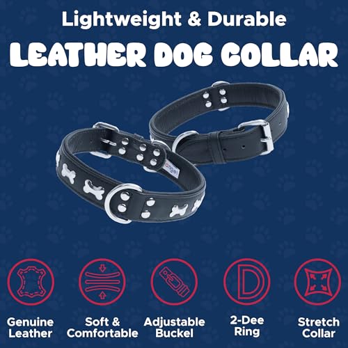 Angel Pet Supplies Rotterdam Bones Dog Collar, Genuine Leather Dog Collar for Large Dogs to Extra Large Dogs, Thick Dog Collar with D-Rings, Midnight Black Collar, 24 x 1 ¼ (41320)